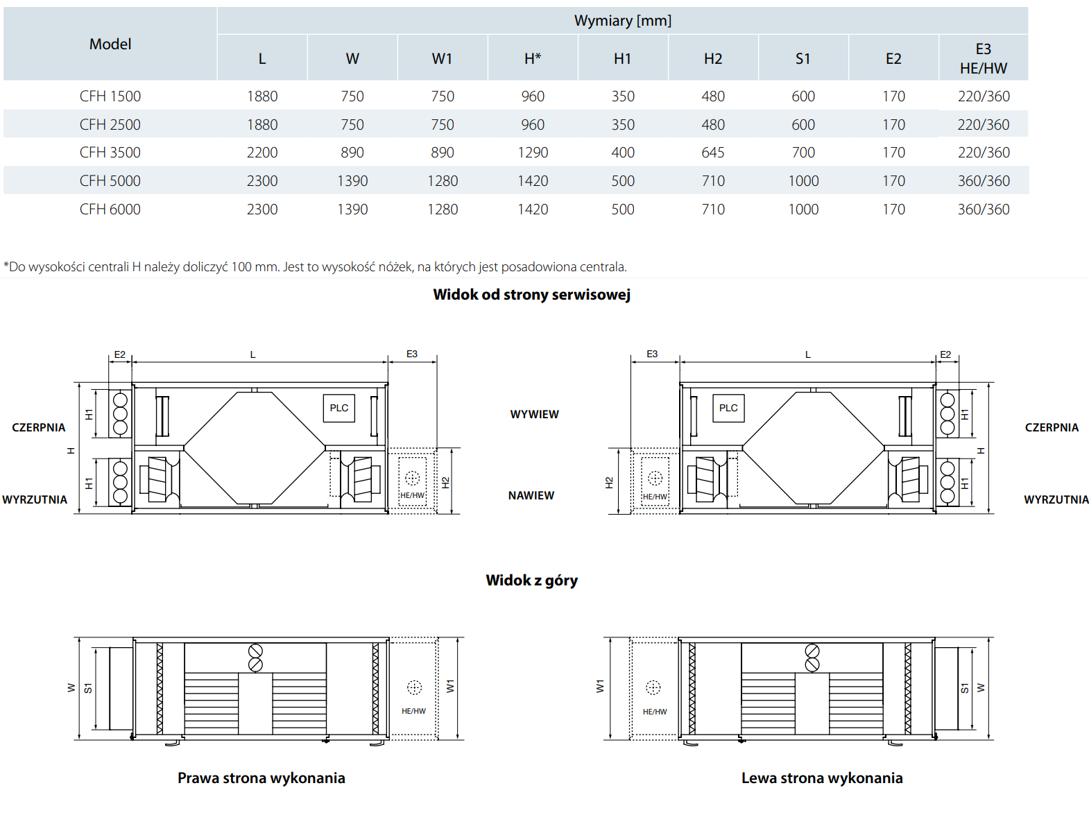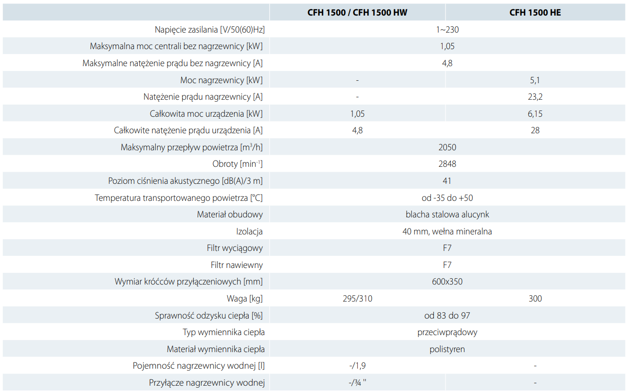 CFH modele bez wbudowanej nagrzewnicy.