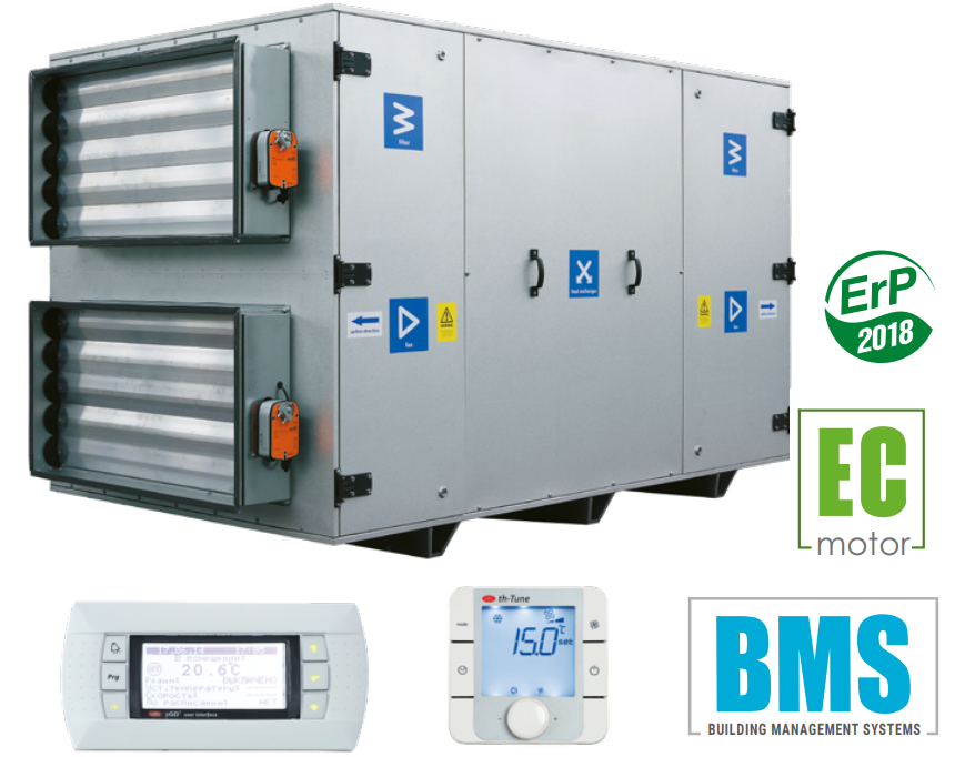 W centralach zastosowano wentylatory z silnikami komutowanymi elektronicznie typu EC, z zewnętrznym wirnikiem i łopatkami zagiętymi do tyłu. Tego typu silniki są obecnie najbardziej innowacyjnym rozwiązaniem w dziedzinie oszczędzania energii elektrycznej. Zintegrowany system elektroniki w silnikach EC umożliwia płynną regulację w pełnym zakresie prędkości obrotowej wentylatora przy zachowaniu wysokiej sprawności. Silniki komutowane elektronicznie osiągają sprawność do 90%. Zastosowanie silników EC pozwoliło zmniejszyć zużycie energii elektrycznej od 1,5 do 3 razy, przy zachowaniu wysokiej sprawności oraz niskiego poziomu hałasu.