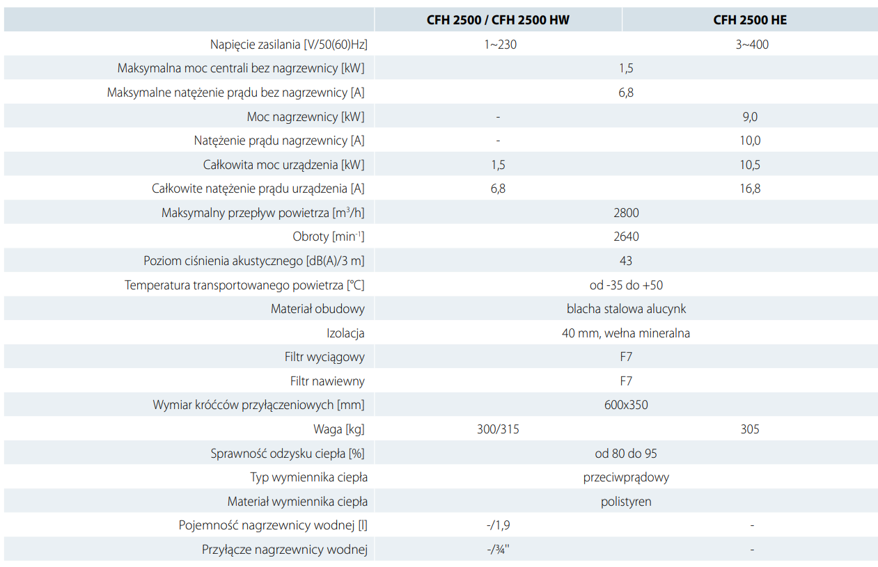 CFH HE modele są wyposażone w nagrzewnicę elektryczną wtórną.