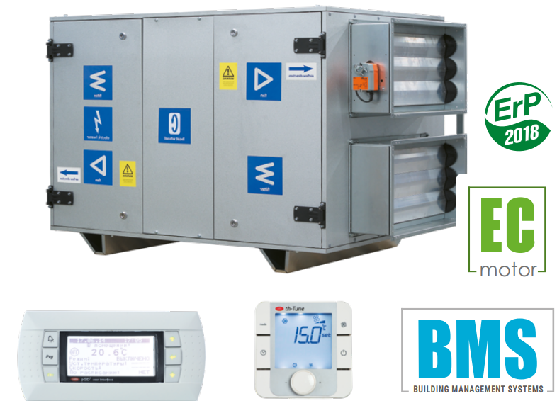 W centralach zastosowano wentylatory z silnikami komutowanymi elektronicznie typu EC, z zewnętrznym wirnikiem i łopatkami zagiętymi do tyłu. Tego typu silniki są obecnie najbardziej innowacyjnym rozwiązaniem w dziedzinie oszczędzania energii elektrycznej. Zintegrowany system elektroniki w silnikach EC umożliwia płynną regulację w pełnym zakresie prędkości obrotowej wentylatora przy zachowaniu wysokiej sprawności. Silniki komutowane elektronicznie osiągają sprawność do 90%. Zastosowanie silników EC pozwoliło zmniejszyć zużycie energii elektrycznej od 1,5 do 3 razy, przy zachowaniu wysokiej sprawności oraz niskiego poziomu hałasu.