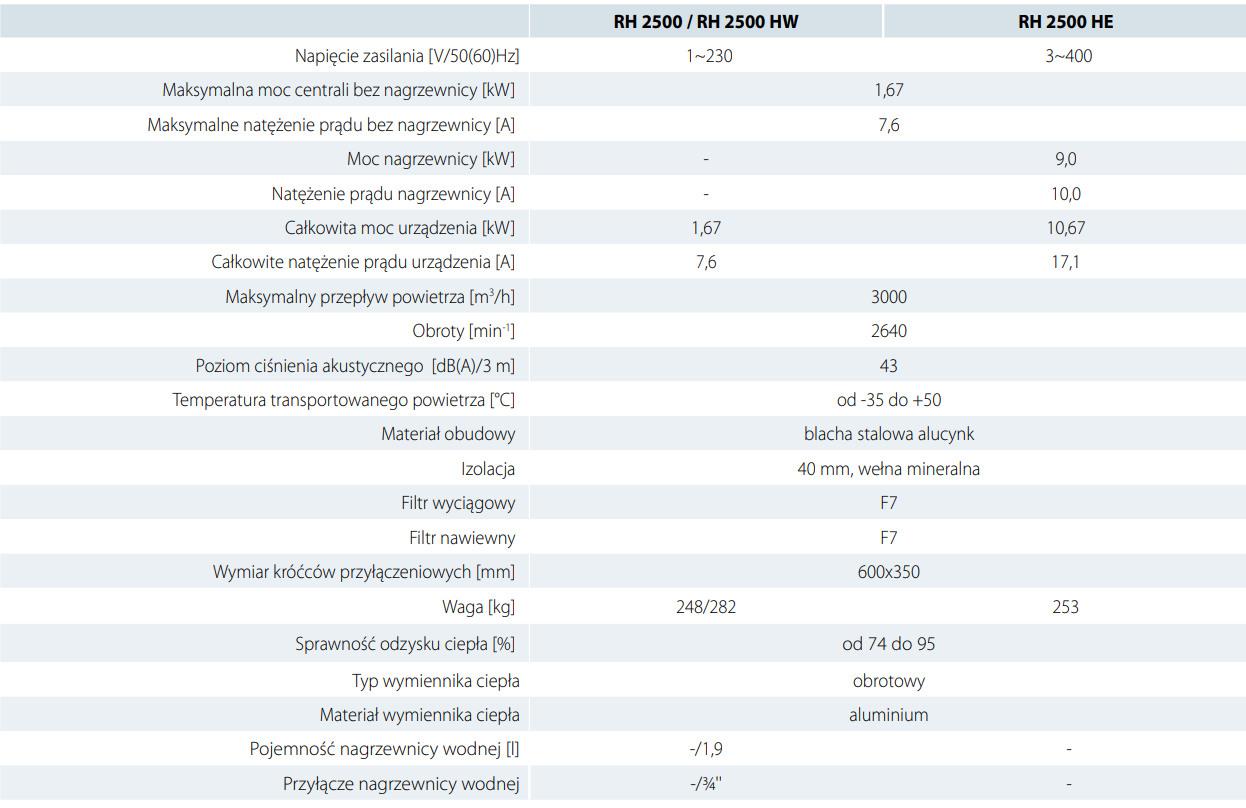 RH HE modele są wyposażone w nagrzewnicę elektryczną wtórną.