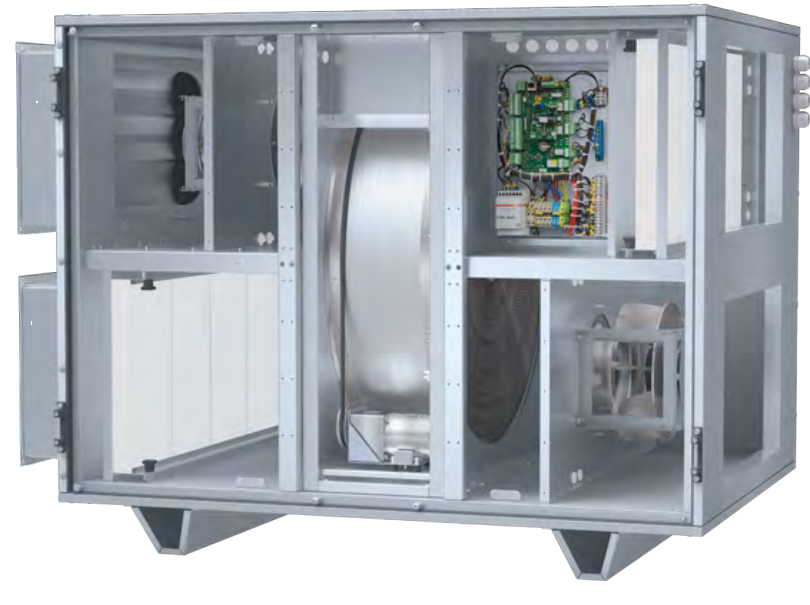 Centrala wentylacyjna z odzyskiem ciepła to nowoczesne urządzenie wentylacyjne zapewniające mechaniczną wymianę powietrza w pomieszczeniach z jednoczesnym jego filtrowaniem. Powietrze zużyte, za pośrednictwem wymiennika rotacyjnego, ogrzewa powietrze świeże, nawiewane do pomieszczeń. Centrale są przeznaczone do energooszczędnej wentylacji obiektów oraz montażu z przewodami wentylacyjnym o przekroju 600x350, 700x400 oraz 1000x500 mm.