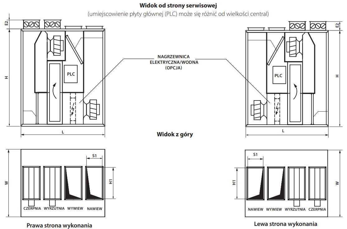 Centrala jest przeznaczona do montażu podłogowego, wewnętrznego. Konserwacja urządzenia oraz filtrów jest możliwa od strony panelu serwisowego. Centrala występuję w wersji prawej lub lewej.