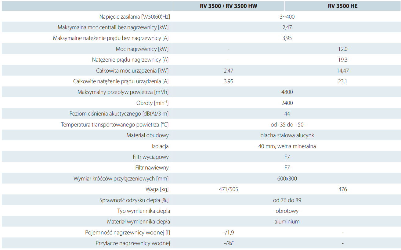 RV HW modele są wyposażone w nagrzewnice wodną wtórną.