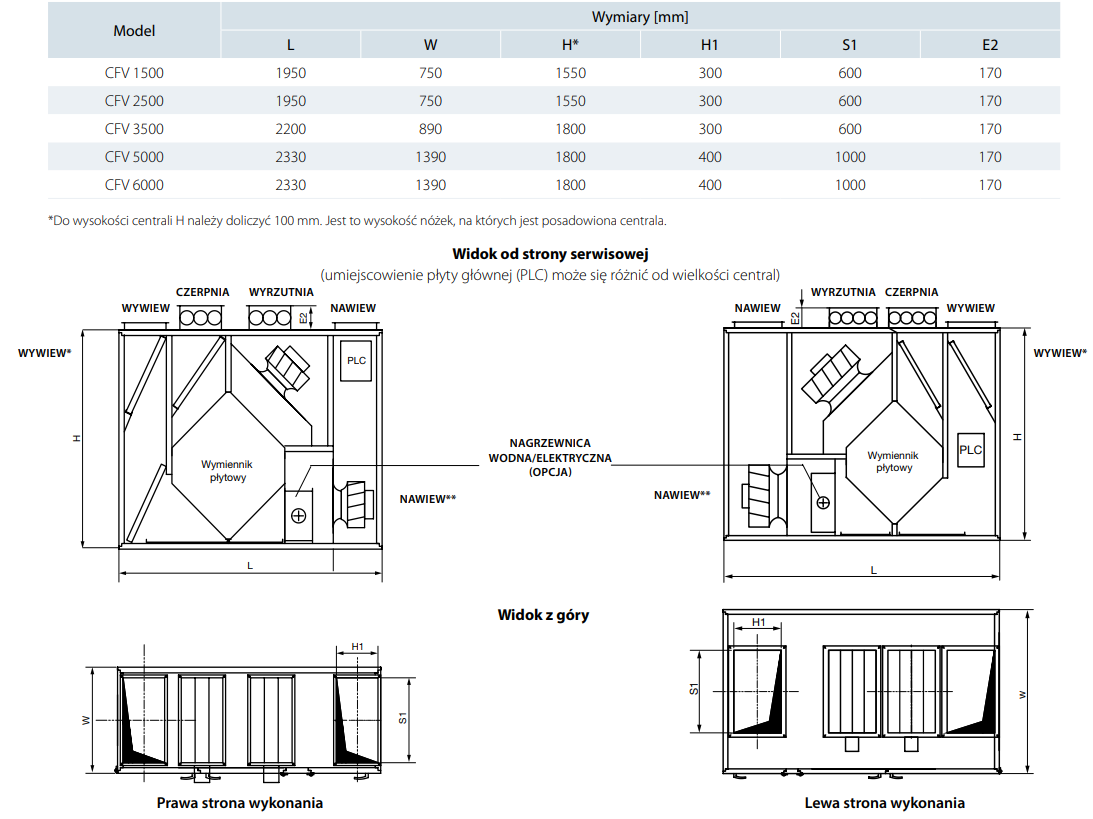 CFV HE modele są wyposażone w nagrzewnicę elektryczną wtórną.