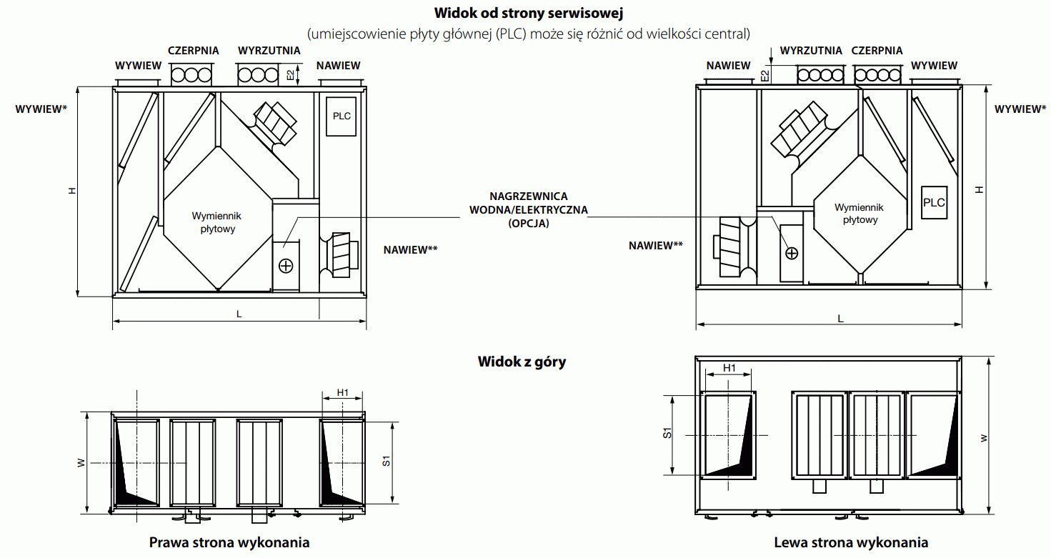 Centrala jest przeznaczona do montażu podłogowego, wewnętrznego. Konserwacja urządzenia oraz filtrów jest możliwa od strony panelu serwisowego. Centrala występuje w wersji prawej lub lewej.