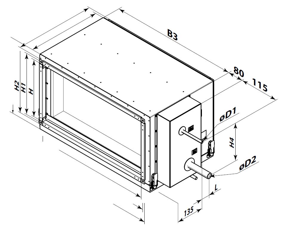 Kanałowe chłodnice powietrza z chłodzeniem bezpośrednim, przeznaczone są do schładzania nawiewanego powietrza w systemach wentylacyjnych o prostokątnym przekroju kanałów. Mogą być także stosowane jako chłodnice w centralach nawiewnych lub nawiewno-wywiewnych.