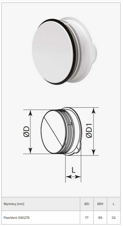 FLEXIVENT030275 - Zaślepka do systemu FlexiVent fi 75 mm