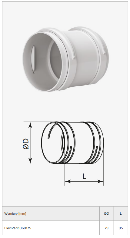 FLEXIVENT060175 - Łącznik kanałów do systemu FlexiVent fi 75 mm