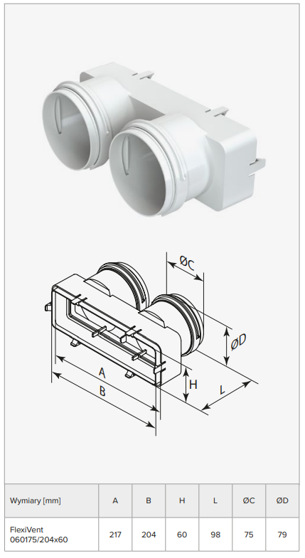 FLEXIVENT060175/204X60 - Łącznik kanałów FlexiVent 2x75/204x60 mm