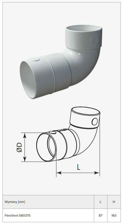 FLEXIVENT060375 - Kolano 90 st. do systemu FlexiVent fi 75 mm