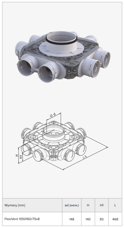 FLEXIVENT1050160/75X8 - Rozdzielacz 8- króćcowy, 8x75/160 mm FlexiVent
