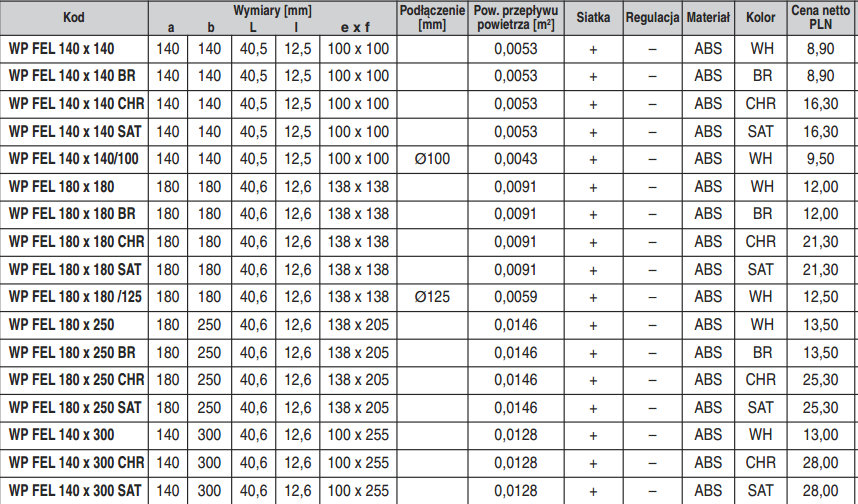 Kratka nawiewno-wywiewna WP FEL 140x300 WH - kolor biały