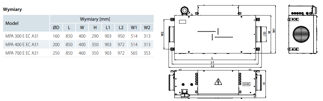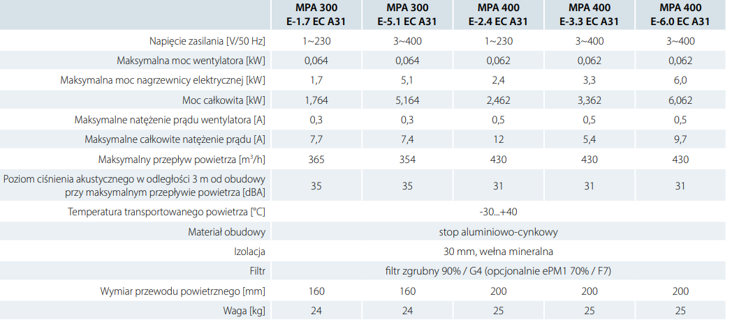 MPA 300 E-1,7 EC A31 - centrala nawiewna z nagrzewnicą elektryczną