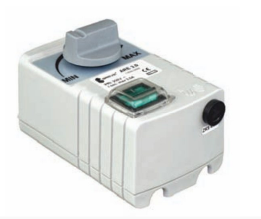 Elektroniczne, tyrystorowe regulatory ARES do bezstopniowej zmiany prędkości obrotowej jednofazowych silników wentylatorowych. Przeznaczone do wmontowania w przemysłowych instalacjach wentylacyjnych lub grzewczych. Wyposażone w podświetlany włącznik, potencjometr służący do płynnej zmiany prędkości nawiewu oraz dodatkowy potencjometr do ustawienia minimalnych obrotów wentylatora. Wykonanie w stopniu ochrony IP54.
