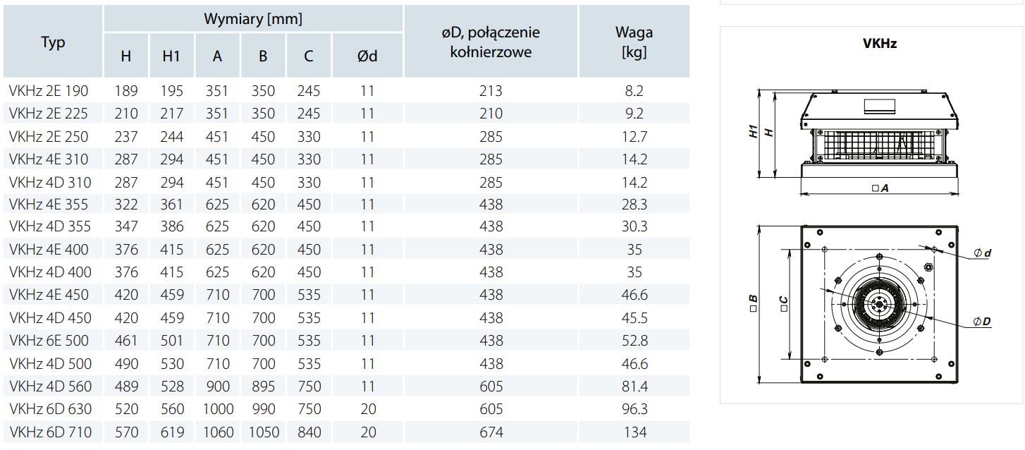 VKHZ6D630 - wentylator dachowy, 12640 m3/h, 400 V