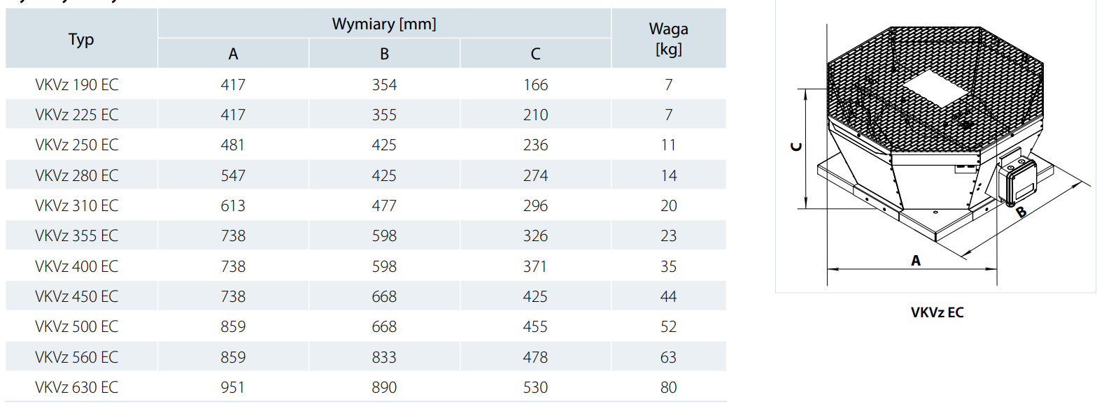 Wentylatory dachowe serii VKVz EC i VKHz EC wykorzystywane są w wywiewnej wentylacji pomieszczeń wymagających energooszczędnych rozwiązań, przy zachowaniu efektywnej wymiany powietrza. Zastosowanie silników EC redukuje zużycie energii o 35% przy jednoczesnym utrzymaniu wysokiego poziomu wydajności i niskiego poziomu hałasu. Zalecane do instalacji w obiektach użytku publicznego takich jak banki, supermarkety, sklepy, restauracje. Wentylatory przeznaczone są do montażu na podstawach dachowych lub tłumiących.